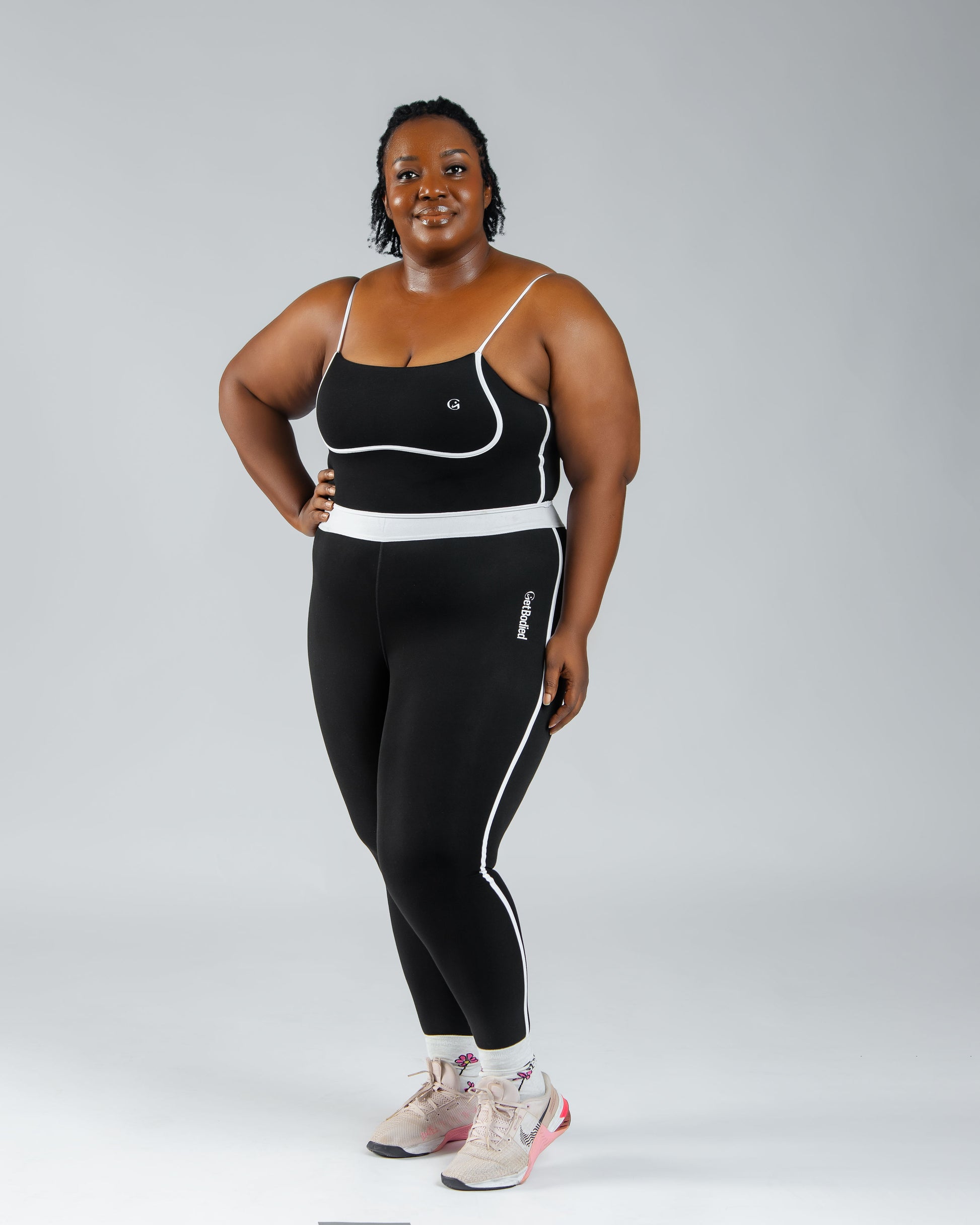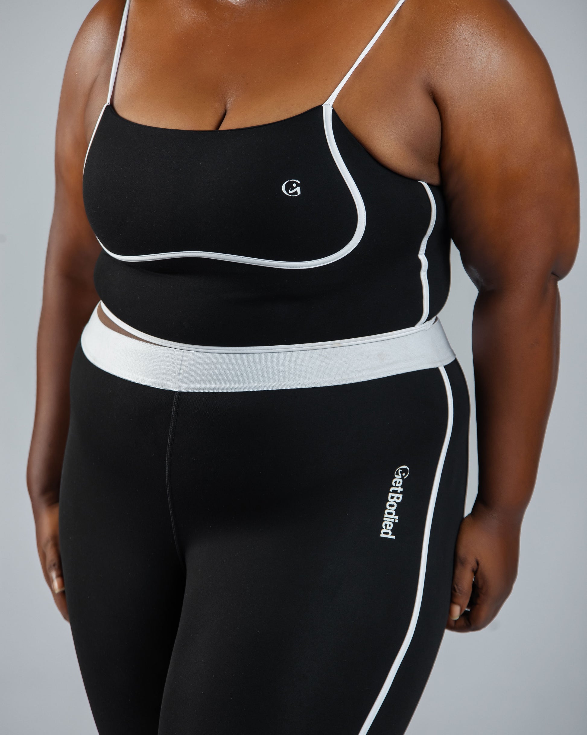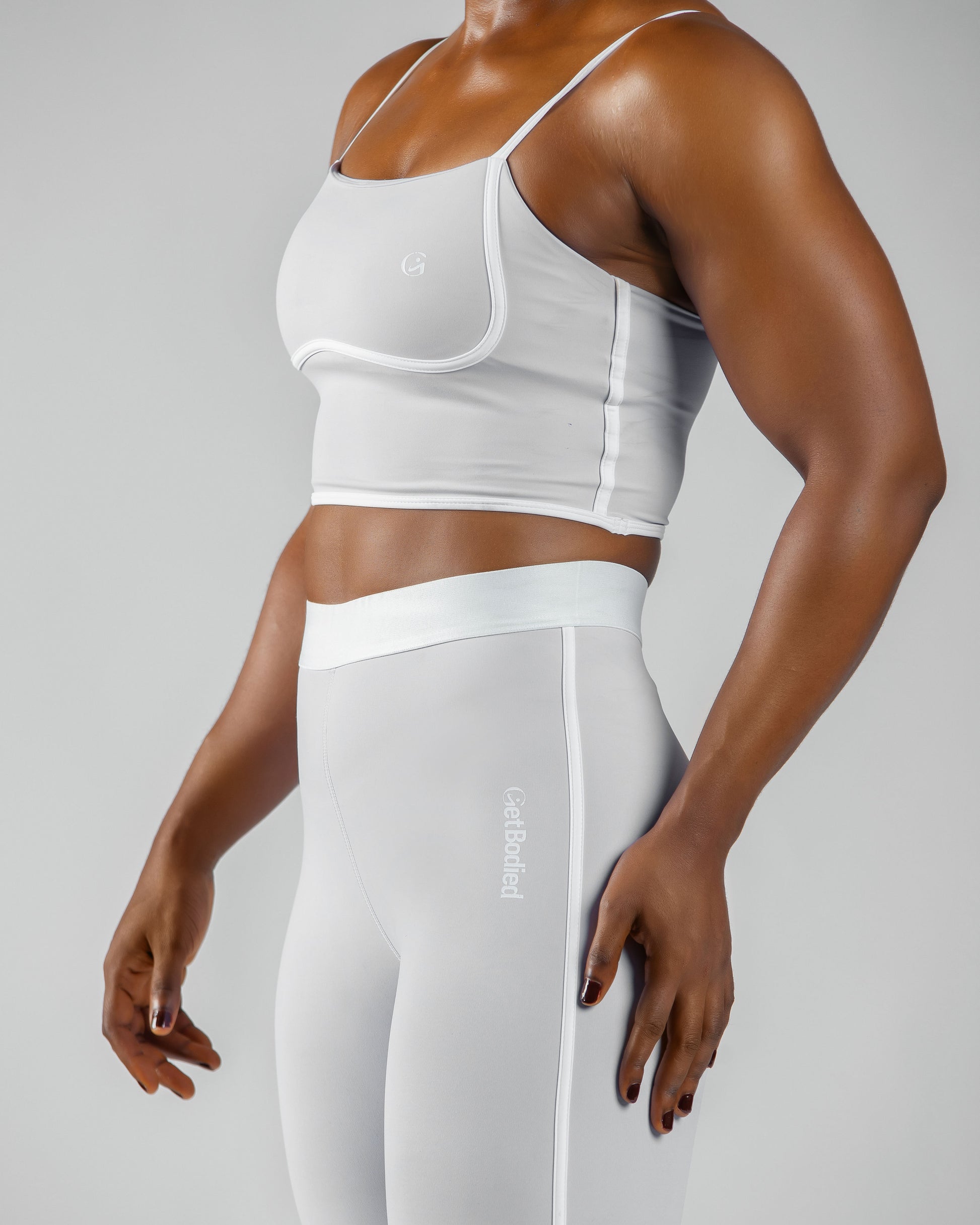 Subtle Branding: Features a discreet small "GetBodied" logo on the bra and hip of the leggings for a touch of brand identity.